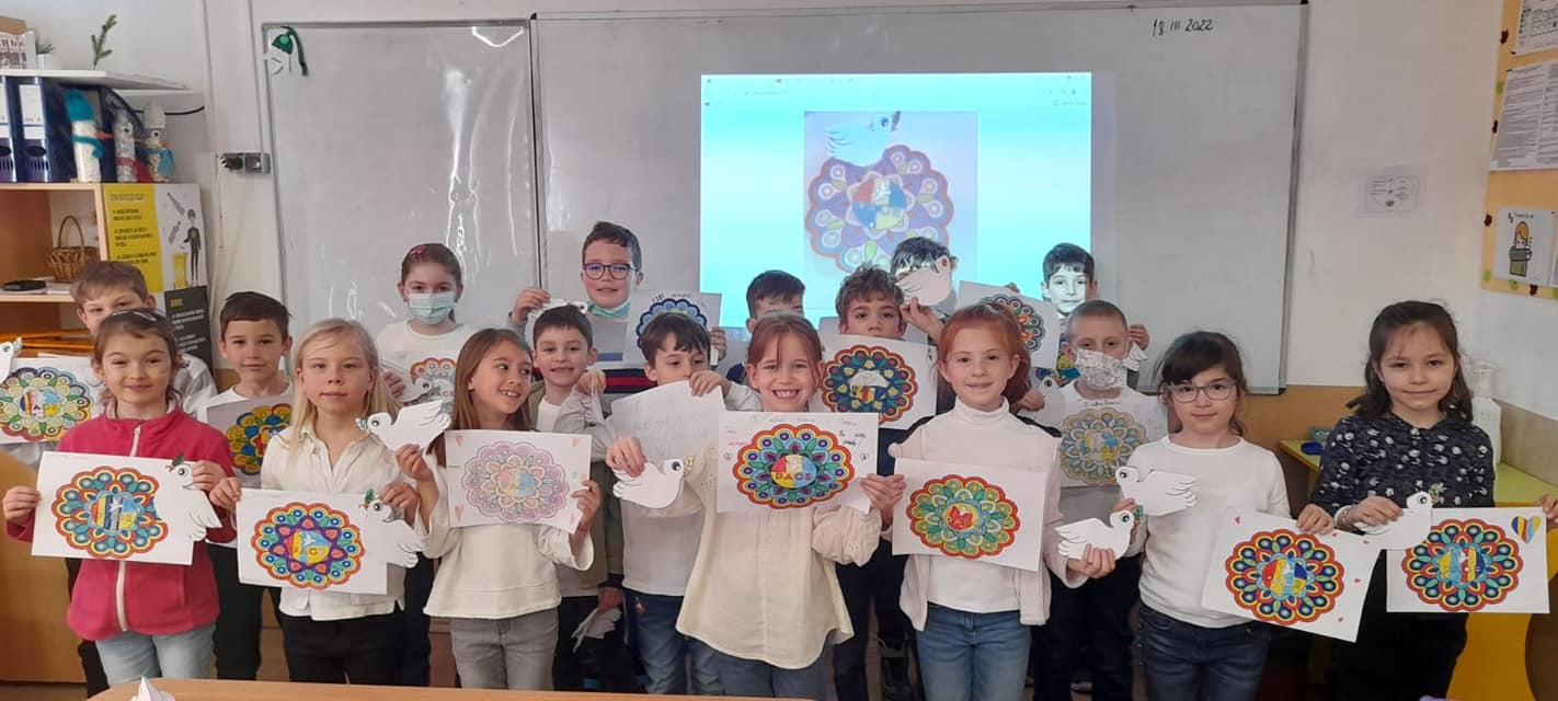 Elevii clasei I B, alături de dna învățătoare Grigore Florina au strigat astăzi în cor- PACE! – având mesaje de încurajare pentru copiii războiului, aflați în suferință! 🕊️🌈☀️