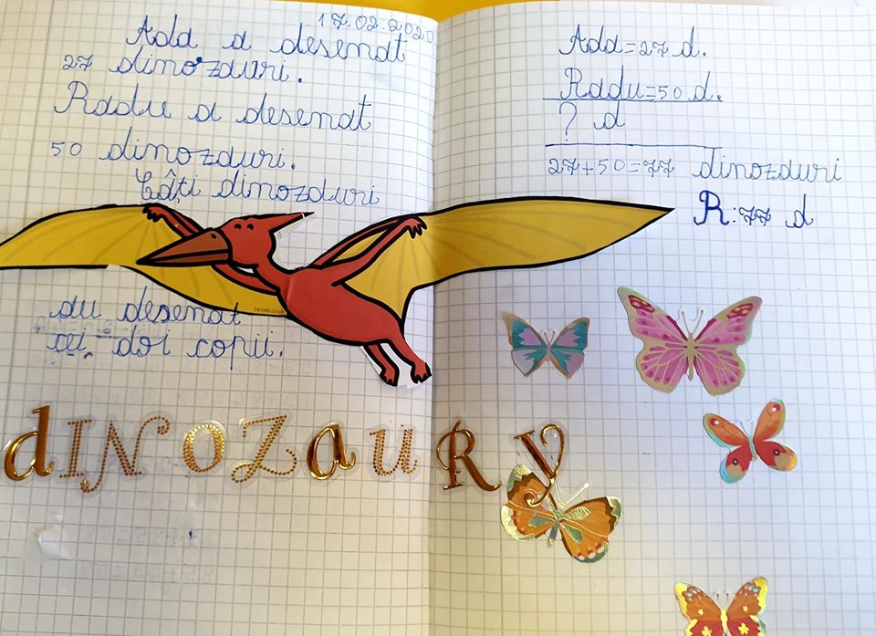 Proiectul “Dinozauri de poveste” ne dezvaluie o lume fascinanta, dar apusa: lumea dinozaurilor! Elevii clasei IB, au descoperit specii de dinozauri, au invatat despre antonime, au descoperit literele si sunetul “d,D”; lumea problemelor cu o operatie le-a deschis fereastra cunoasterii, au pictat, dansat, cantat.